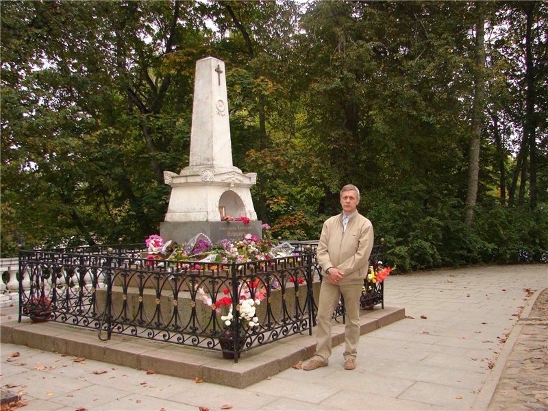 А в то время, когда все заседали за столами, Бас времени даром не терял - у могилы Пушкина
