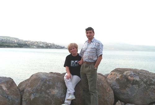 Комм. автора: "После купания в священном озере Кихерет - слева древнееврейский город Тверия, вдали - те самые Голанские высоты о мире"
